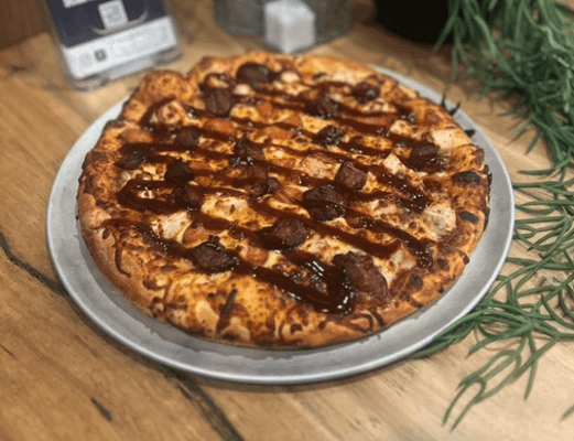 BBQ Sauce, Chicken, Mozzarella Cheese, Capsicum (Fresh) and Onion.